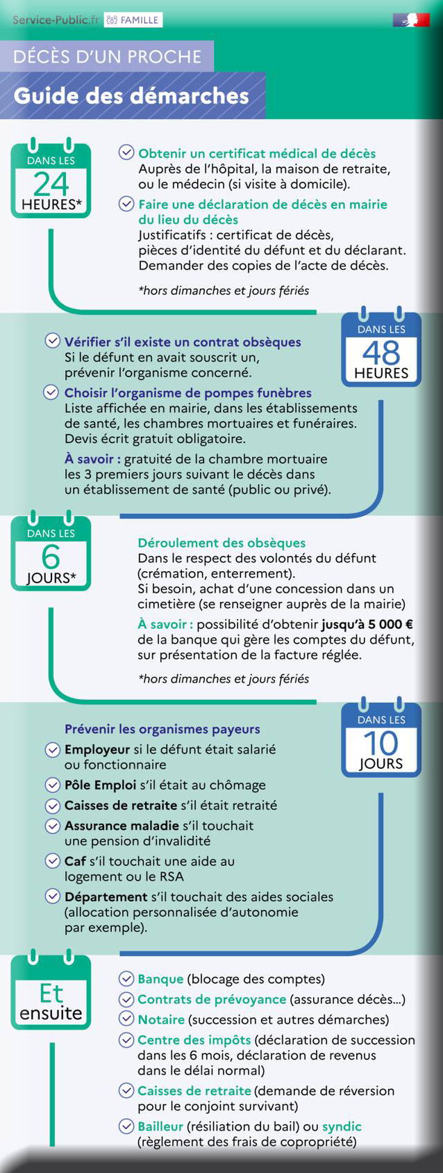 La dรฉclaration de dรฉcรจs est obligatoire et ร faire ร la mairie du lieu de dรฉcรจs dans un dรฉlai de 24h. Les dรฉmarches peuvent รชtre effectuรฉes par une entreprise de pompes funรจbres. Si le dรฉcรจs a lieu ร lโhรดpital, les services hospitaliers se chargeront directement de la dรฉclaration.